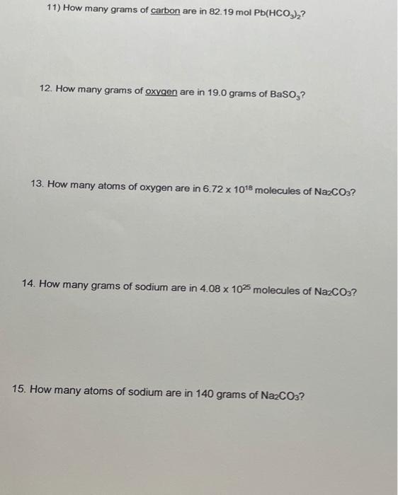 Worksheet A A A Mole Calculations Show All Your Work And Box In Your